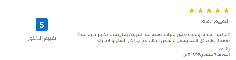 سمعة طبية ممتازة وتقييمات إيجابية من عدد كبير من المرضى.